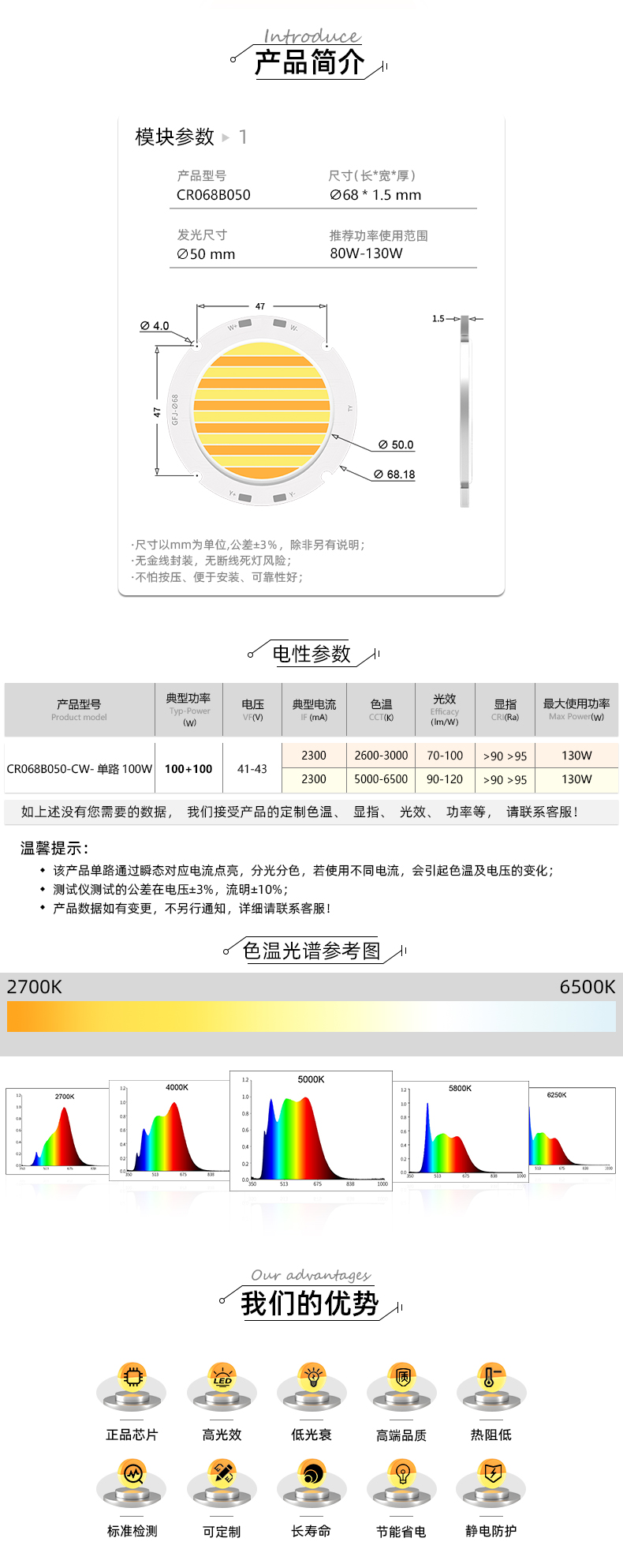 ◇ 倒裝COB 集成光源 小夜燈 車燈光源 模組光源產品優點