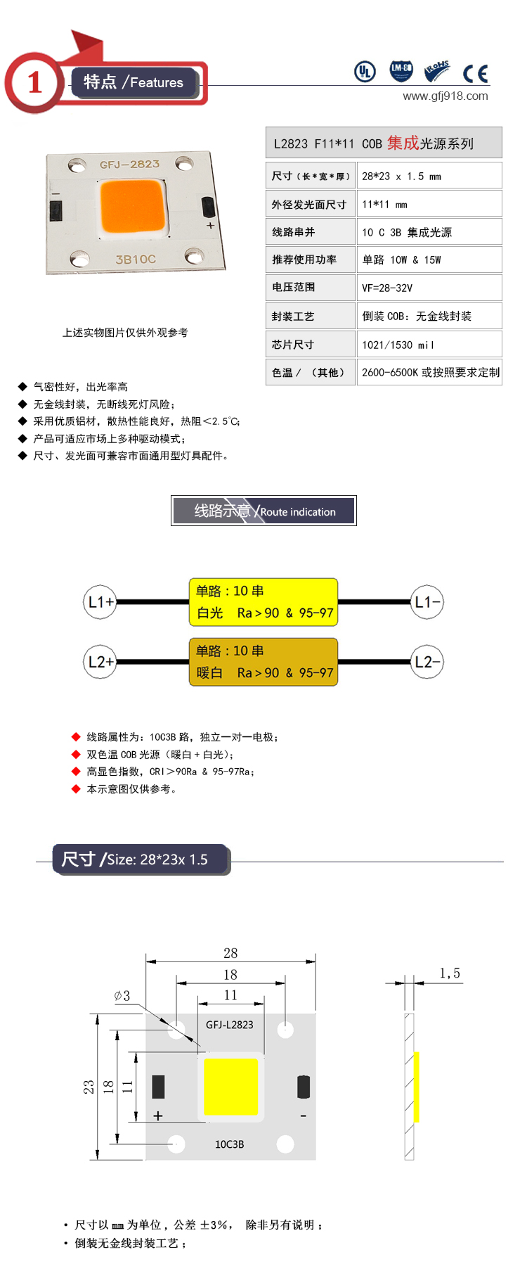 COB光源-雙色變光系列LR028