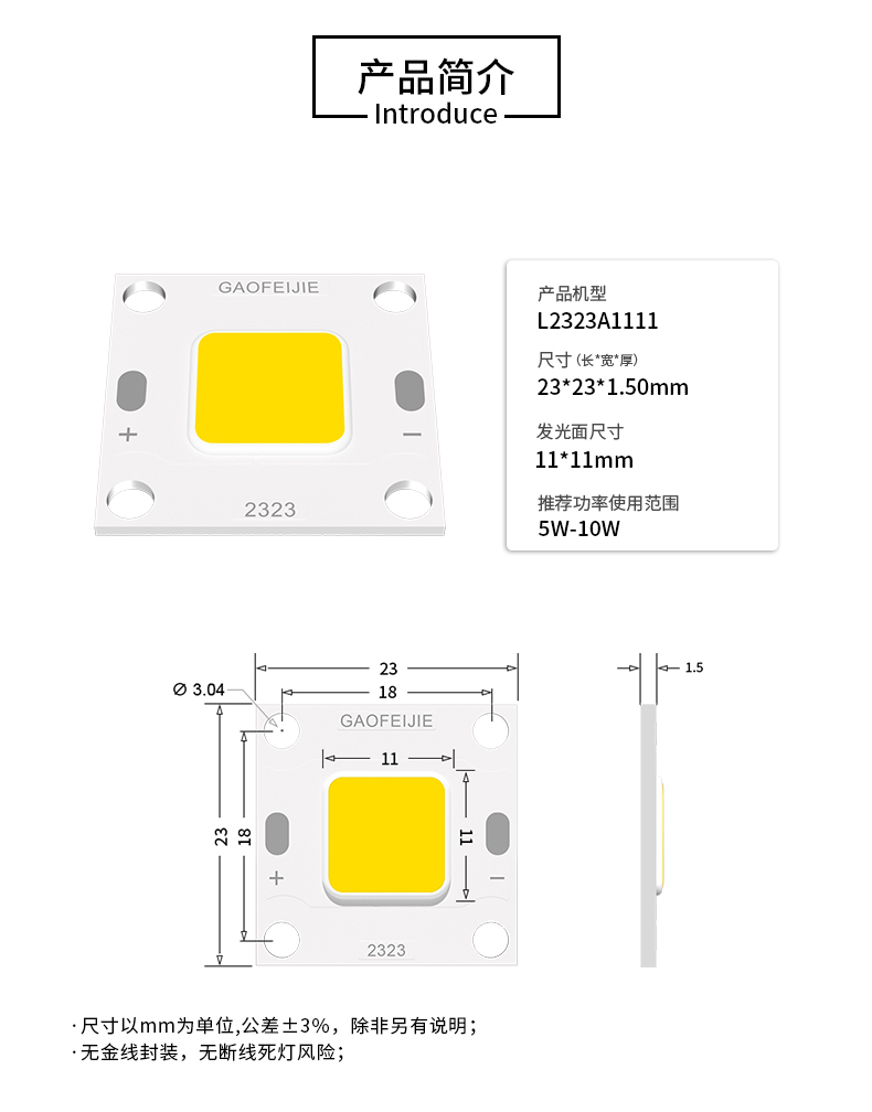 ◇ 固晶厚度薄,散熱更好,超低熱阻,耐高壓,可通大電流使用
